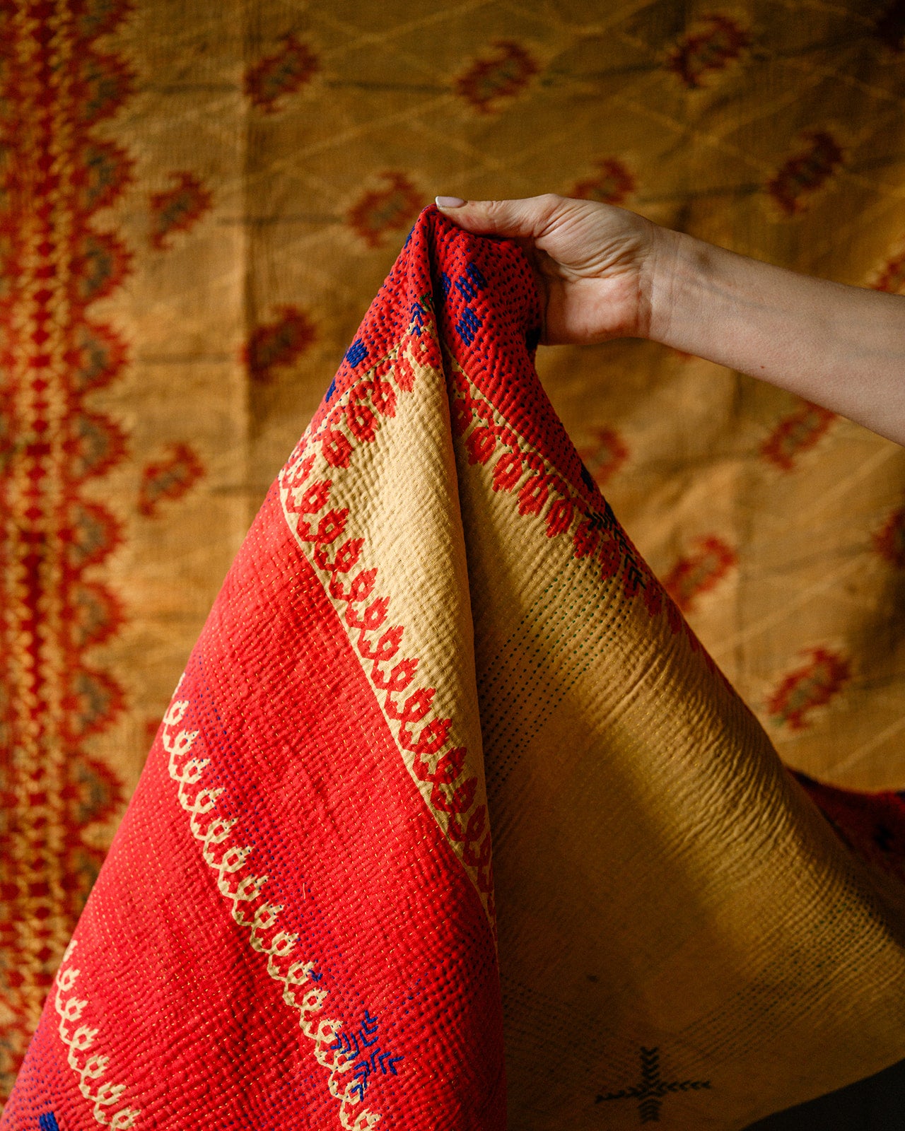 Lightweight and versatile, they are perfect as bedspreads, throws, curtains, or accent pieces. Feeling festive? If you’re really fancy, use one as the most fabulous tablecloth this Christmas to impress your guests. The handmade nature ensures every quilt is one-of-a-kind, with charming imperfections that reflect their artisan origins and unique story.