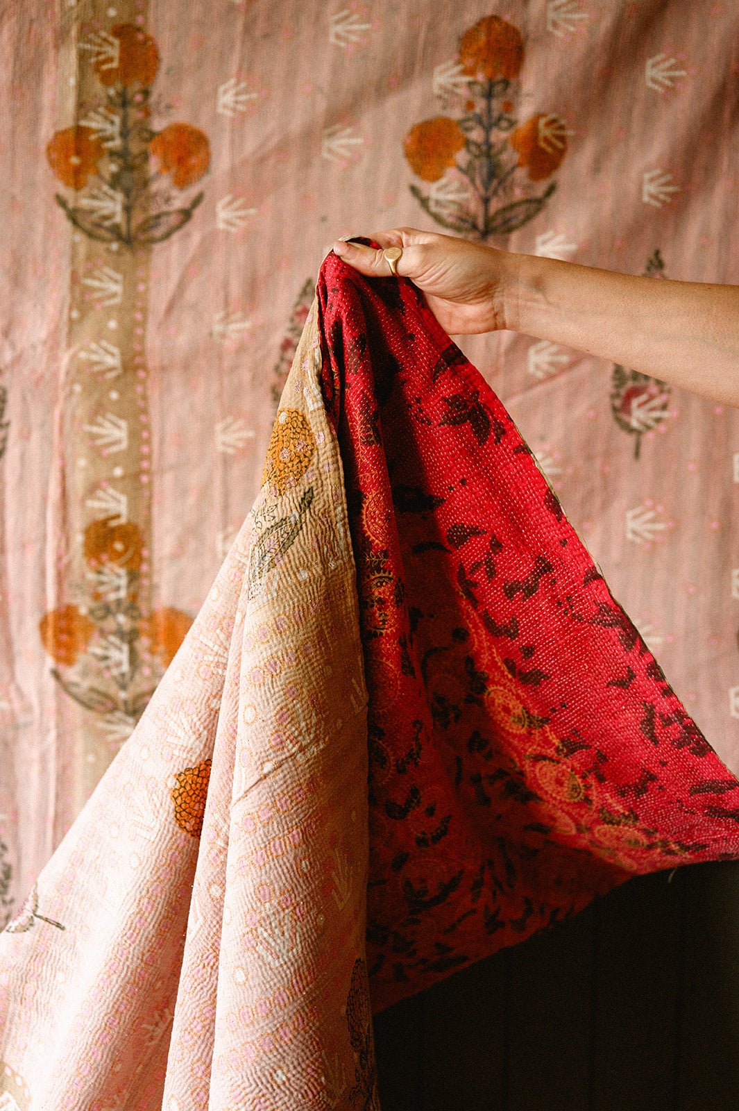 VINTAGE INDIAN HAND-PRINTED THROW