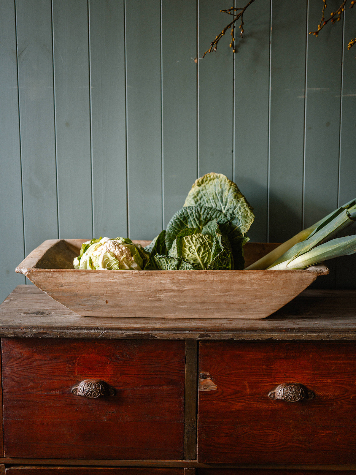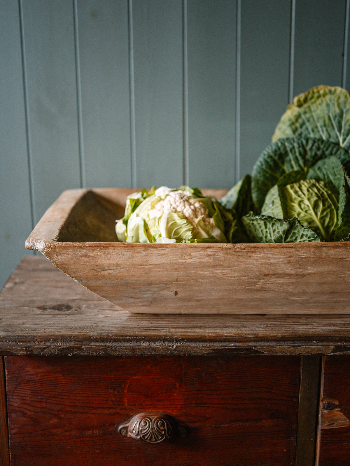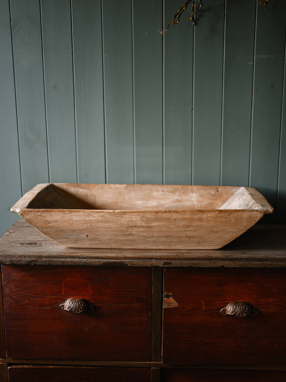 A charming rustic piece, this vintage pine dough trough exudes timeless farmhouse character. Crafted from solid pine, it has the warm patina and subtle wear that comes with age, making it perfect as a decorative piece, planter, or for display in a kitchen or rustic setting. Its simplicity and natural wood tones bring a touch of traditional craftsmanship to any space.