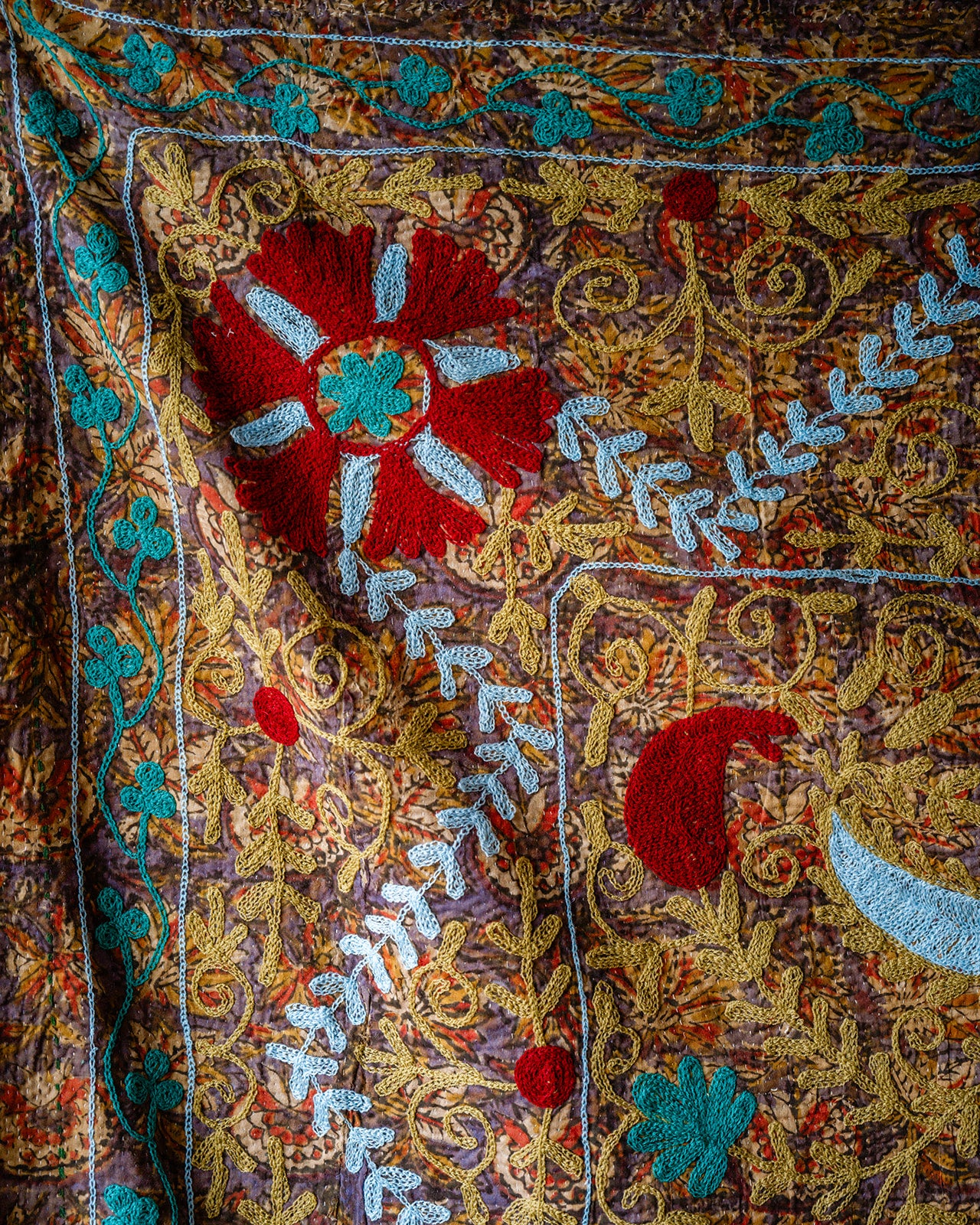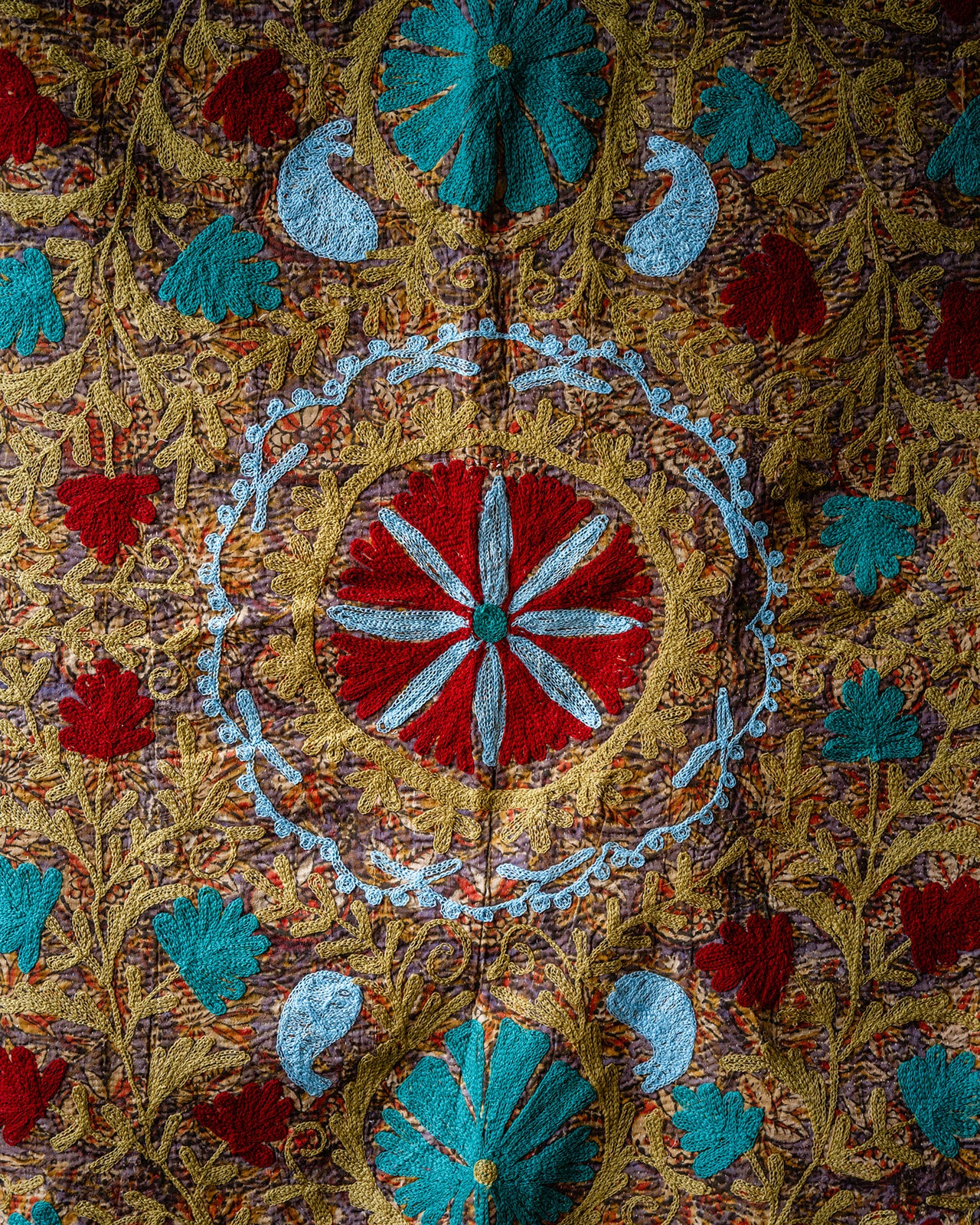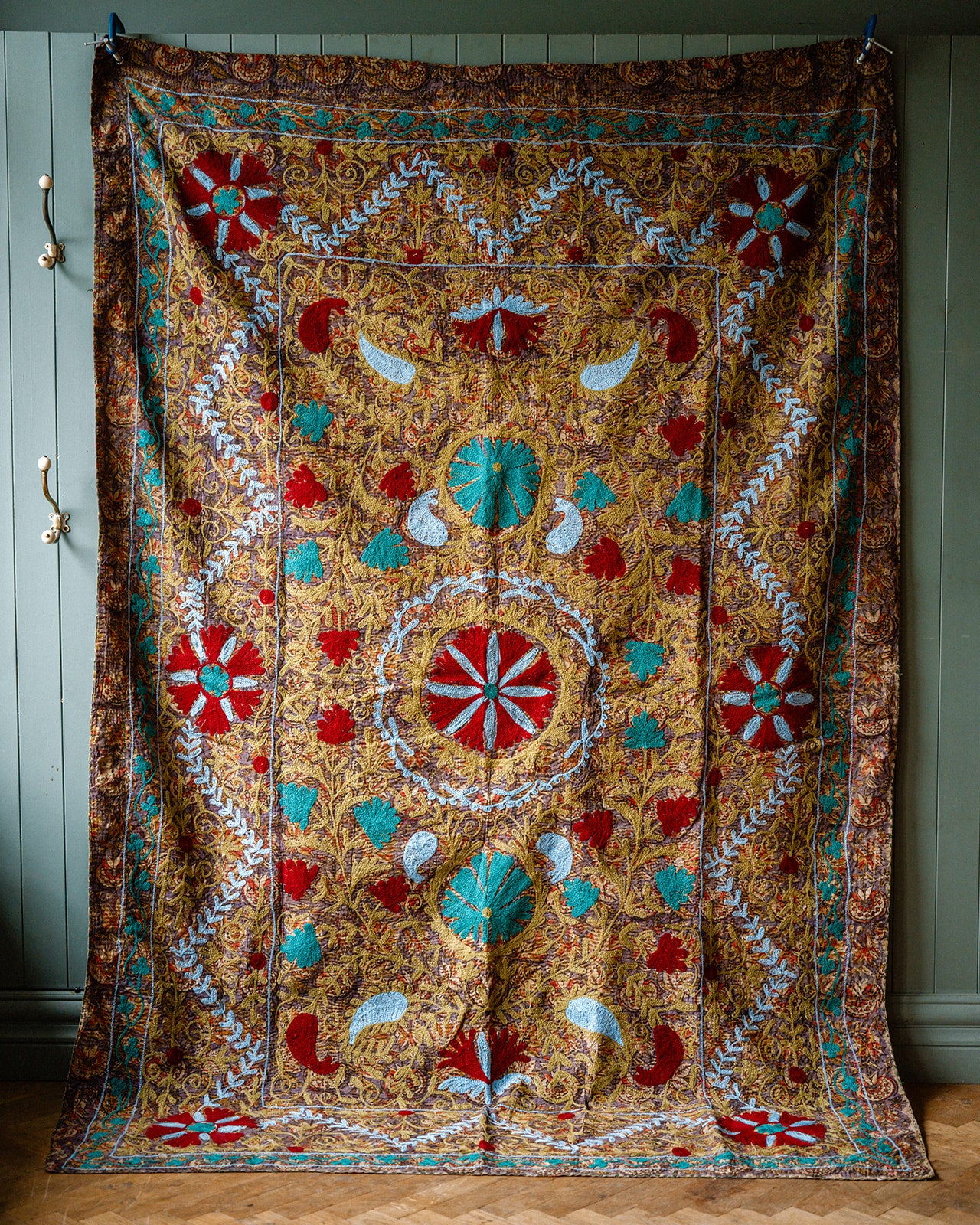 Suzani textiles are known for their unique patterns and vibrant colours. This particular throw showcases a beautiful array of floral motifs, making it not only functional but also a true work of art. With its generous size, it's ideal for cozy evenings or as a stylish statement piece in any room.