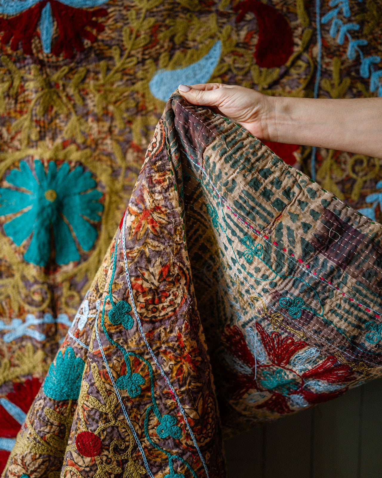 Vintage Suzani Cotton Kantha Quilt - Made in India