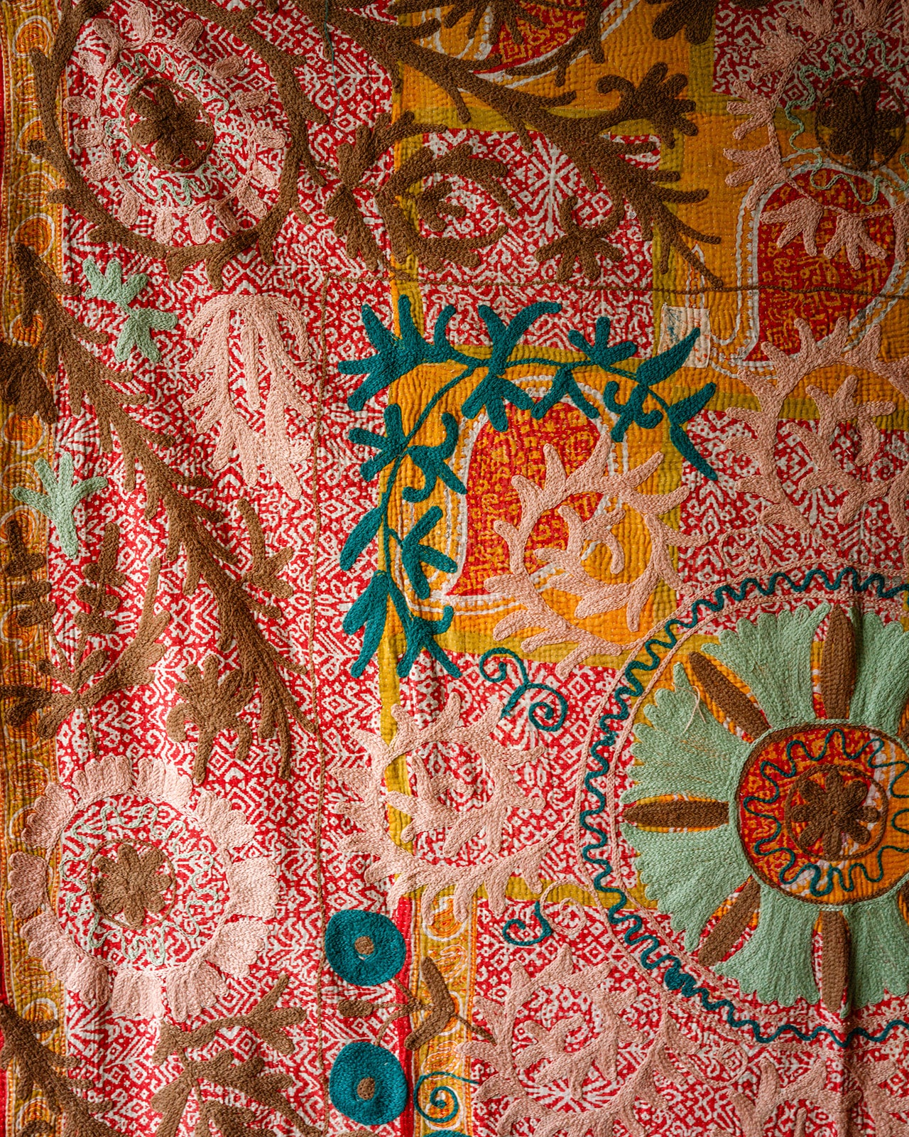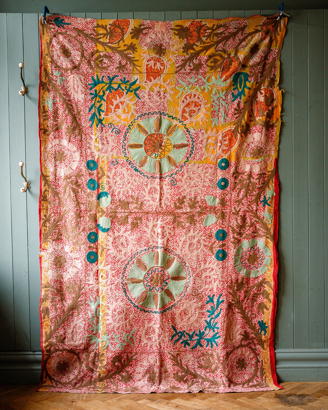 Suzani textiles are known for their unique patterns and vibrant colours. This particular throw showcases a beautiful array of floral motifs, making it not only functional but also a true work of art. With its generous size, it's ideal for cozy evenings or as a stylish statement piece in any room.