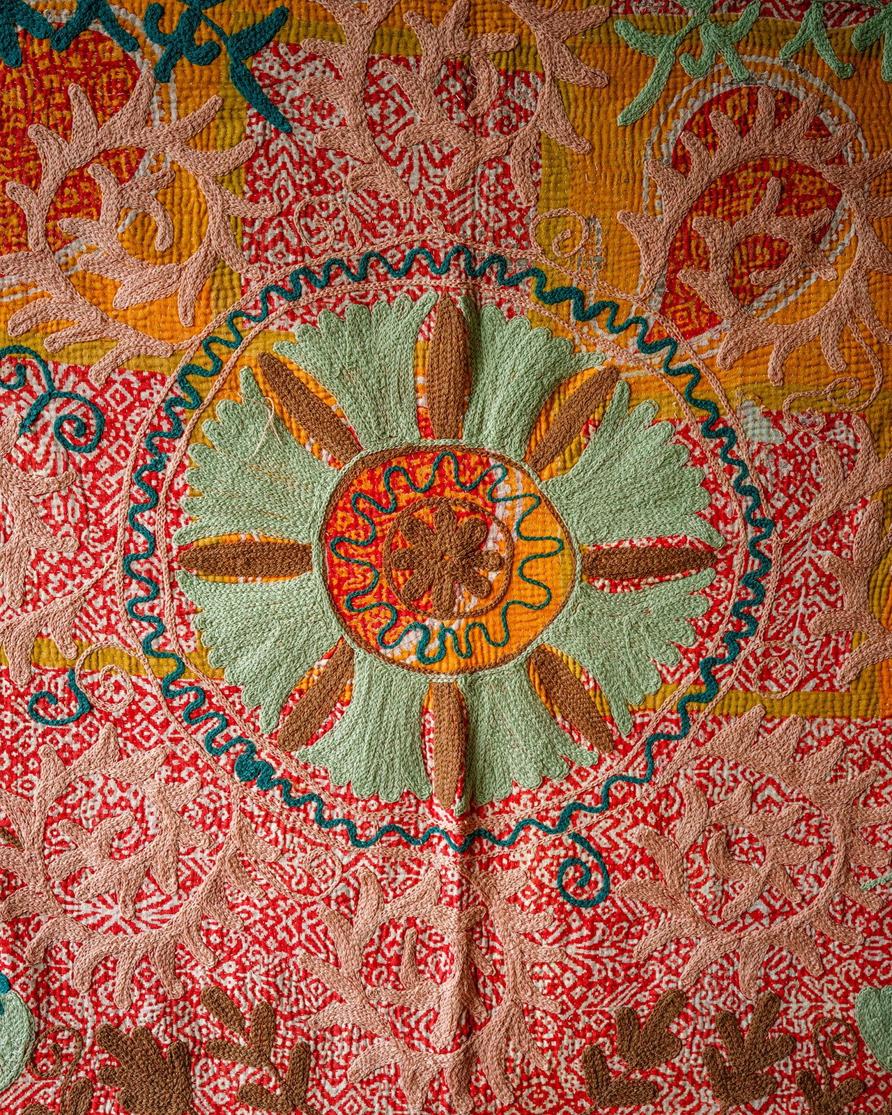 Add a touch of global flair to your home with this stunning Vintage Suzani cotton throw, handmade in India. Featuring intricate, colorful embroidery that reflects traditional Central Asian artistry, this piece serves as a perfect decorative accent. Whether draped over a sofa, layered on a bed, or used to upholster a headboard or ottoman, it effortlessly elevates any space.
