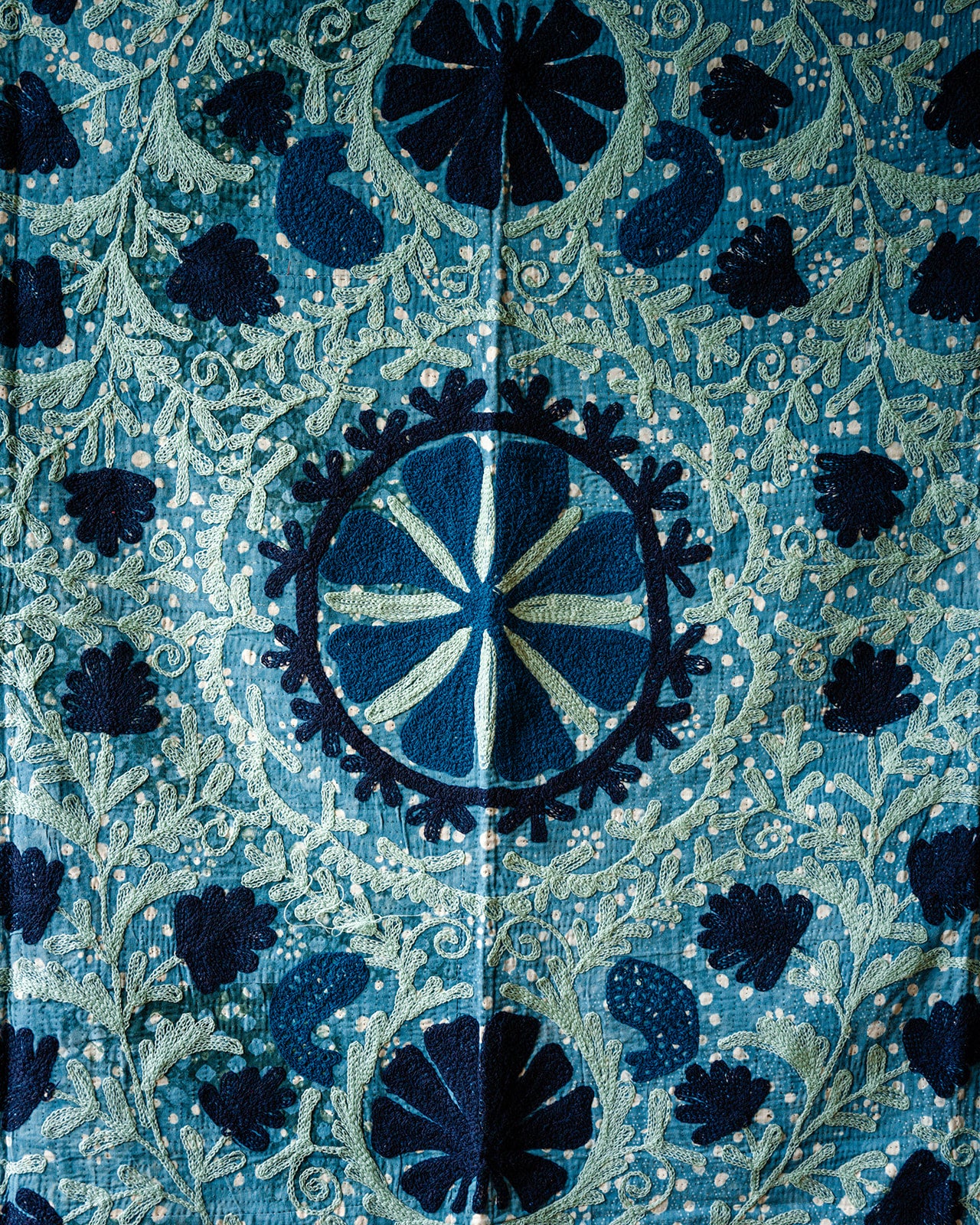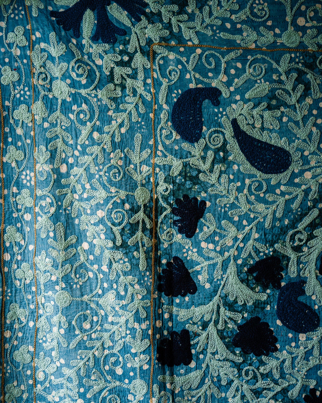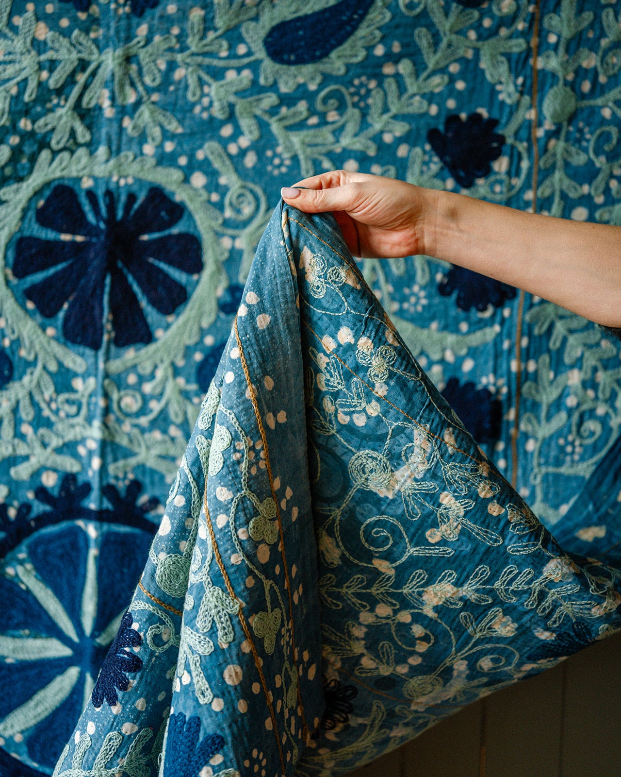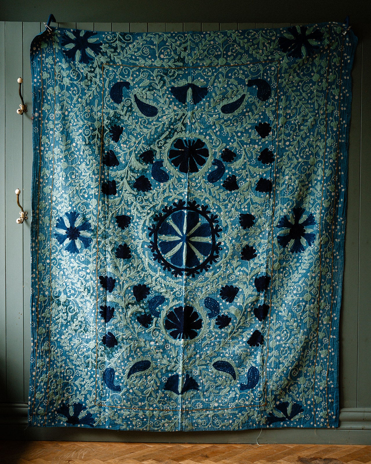 Suzani textiles are known for their unique patterns and vibrant colours. This particular throw showcases a beautiful array of floral motifs, making it not only functional but also a true work of art. With its generous size, it's ideal for cozy evenings or as a stylish statement piece in any room.