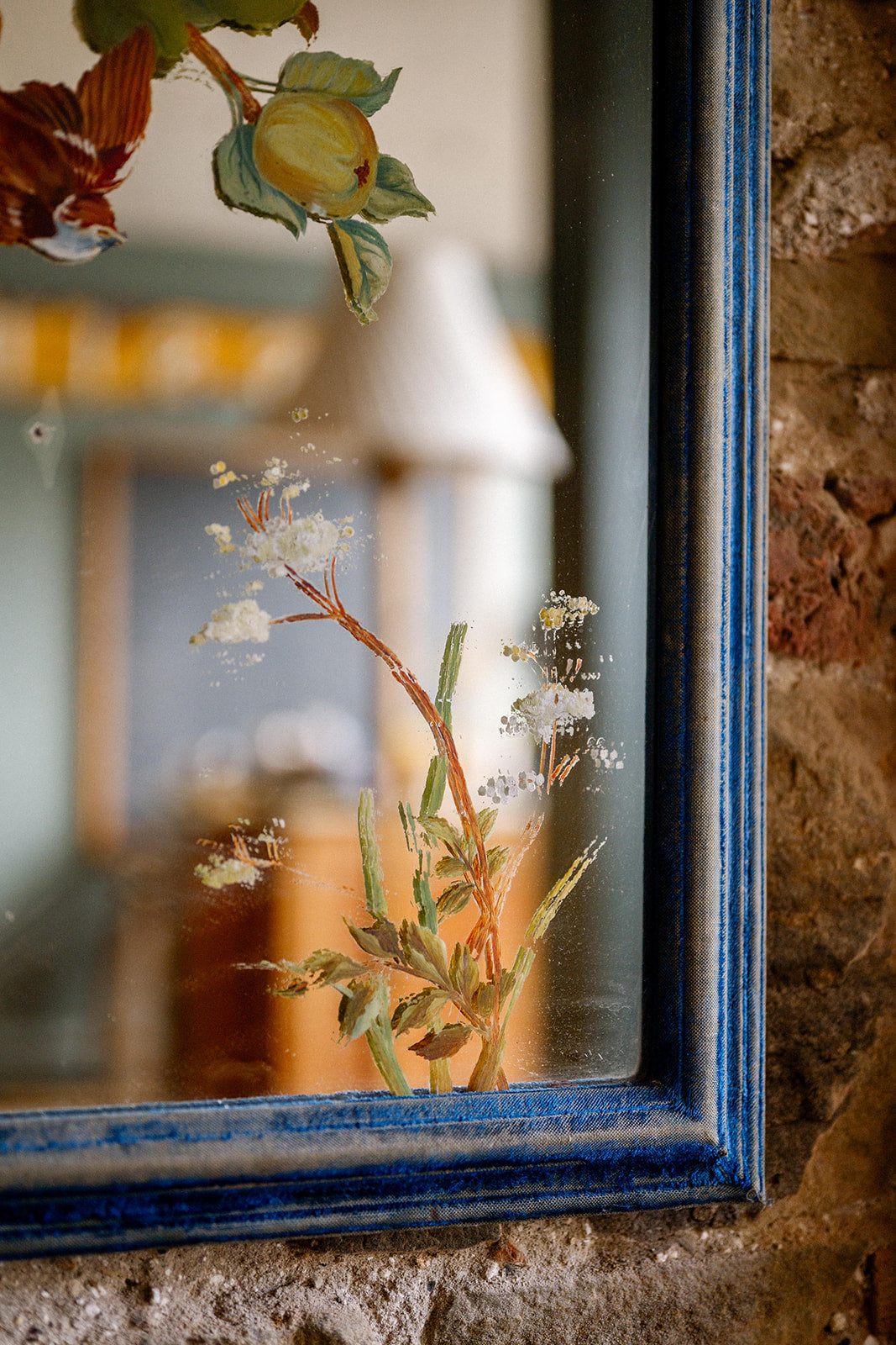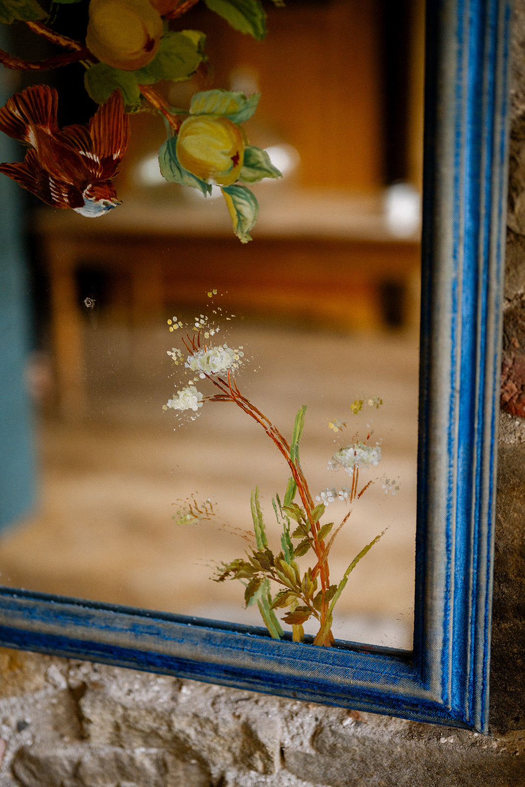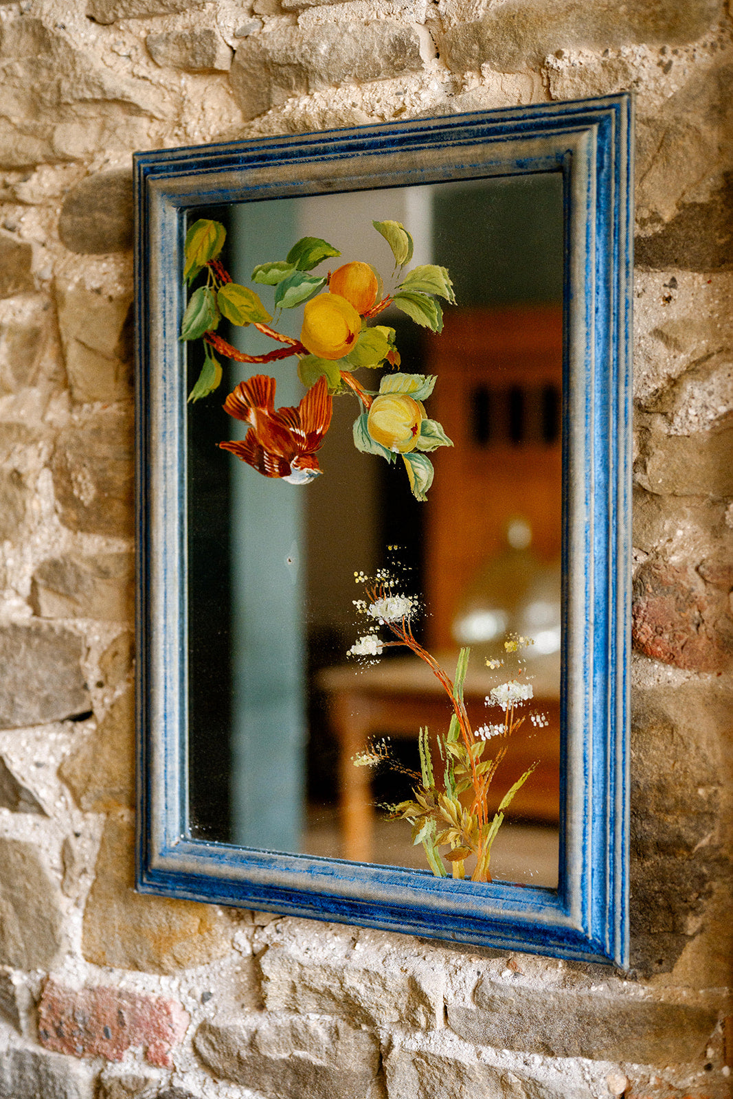 This stunning vintage mirror features intricate hand-painted detailing and a luxurious velvet frame, making it a true statement piece for any home. Perfect as antique wall décor, this one-of-a-kind mirror adds charm, character, and timeless elegance to living rooms, bedrooms, or hallways. Ideal for collectors of vintage mirrors or anyone looking to bring unique antique style into their space.