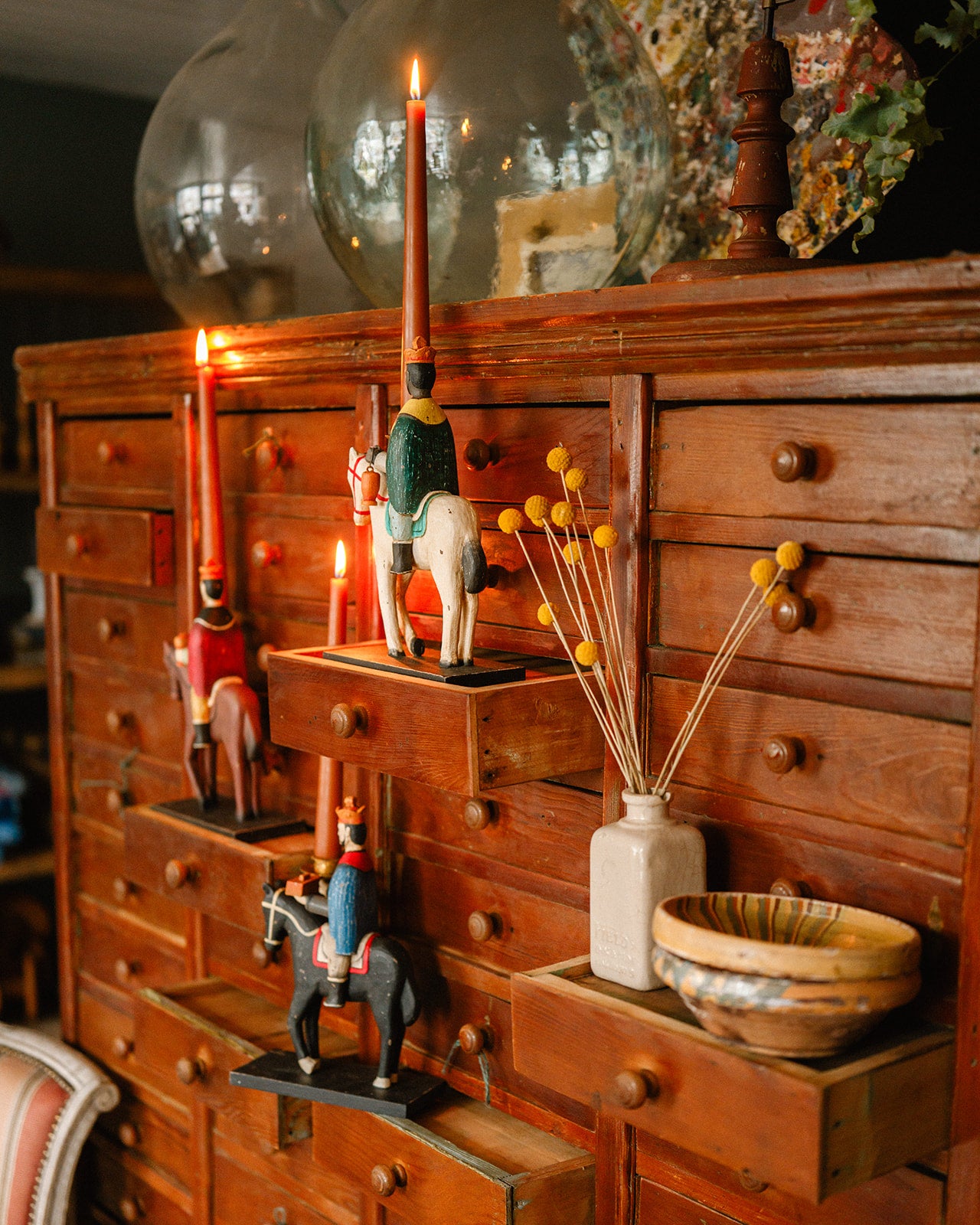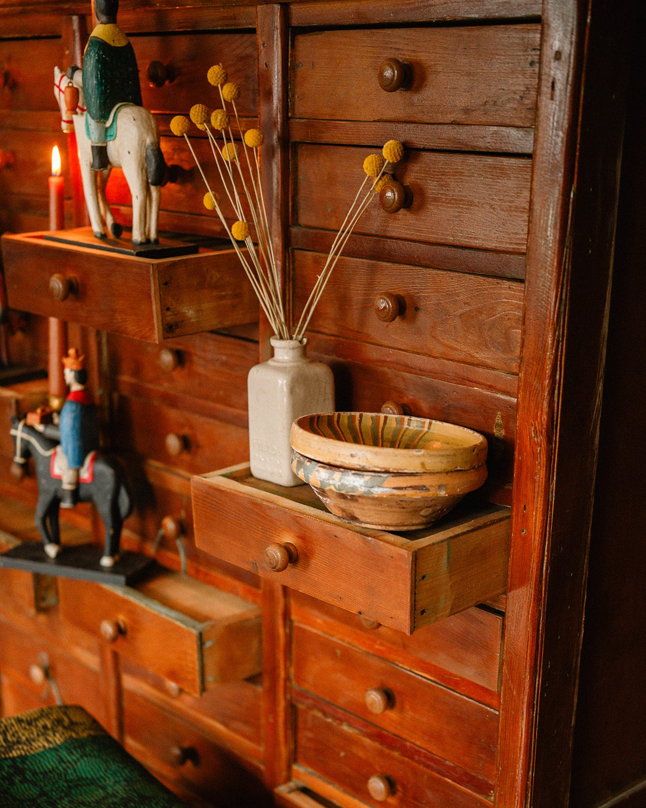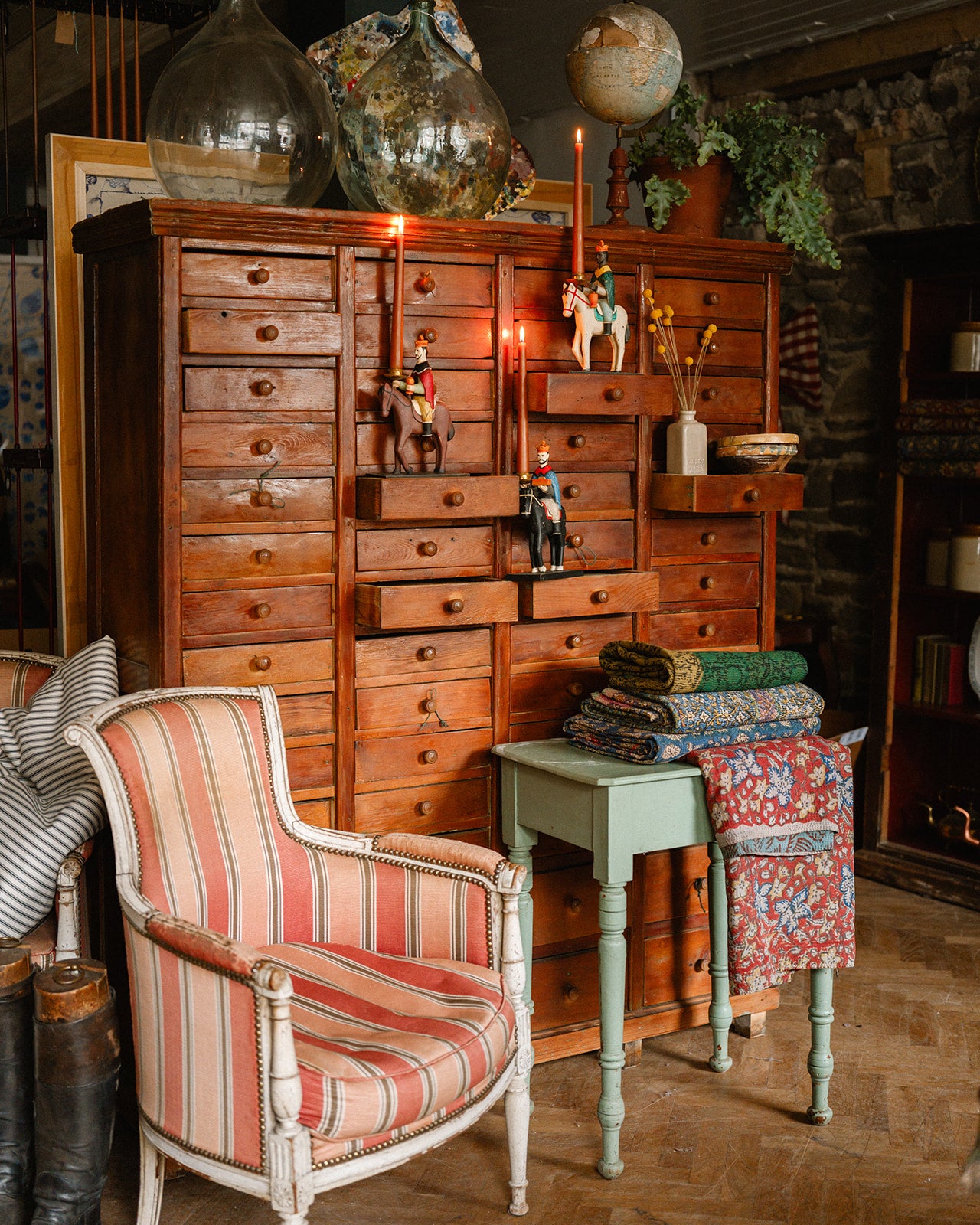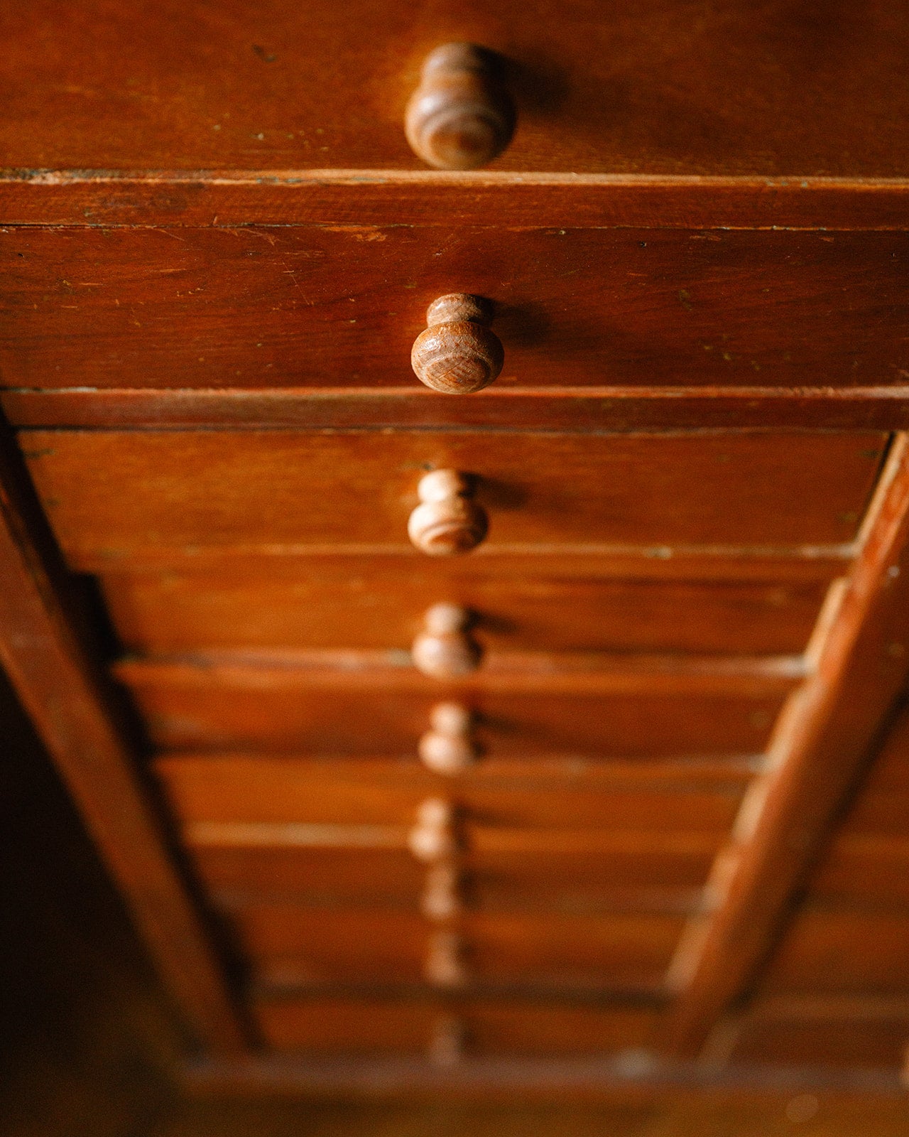 Lovely Vintage bank with great patina and loads of practical storage. Two available! Makes for a brilliant storage piece and works well in a kitchen, studio or shop setting.