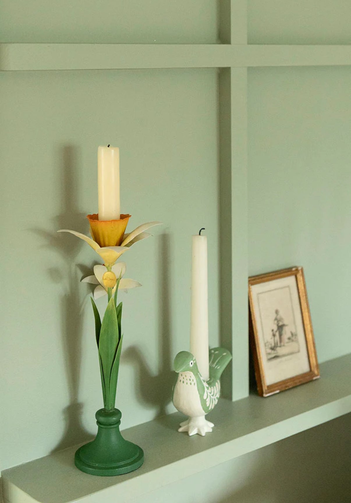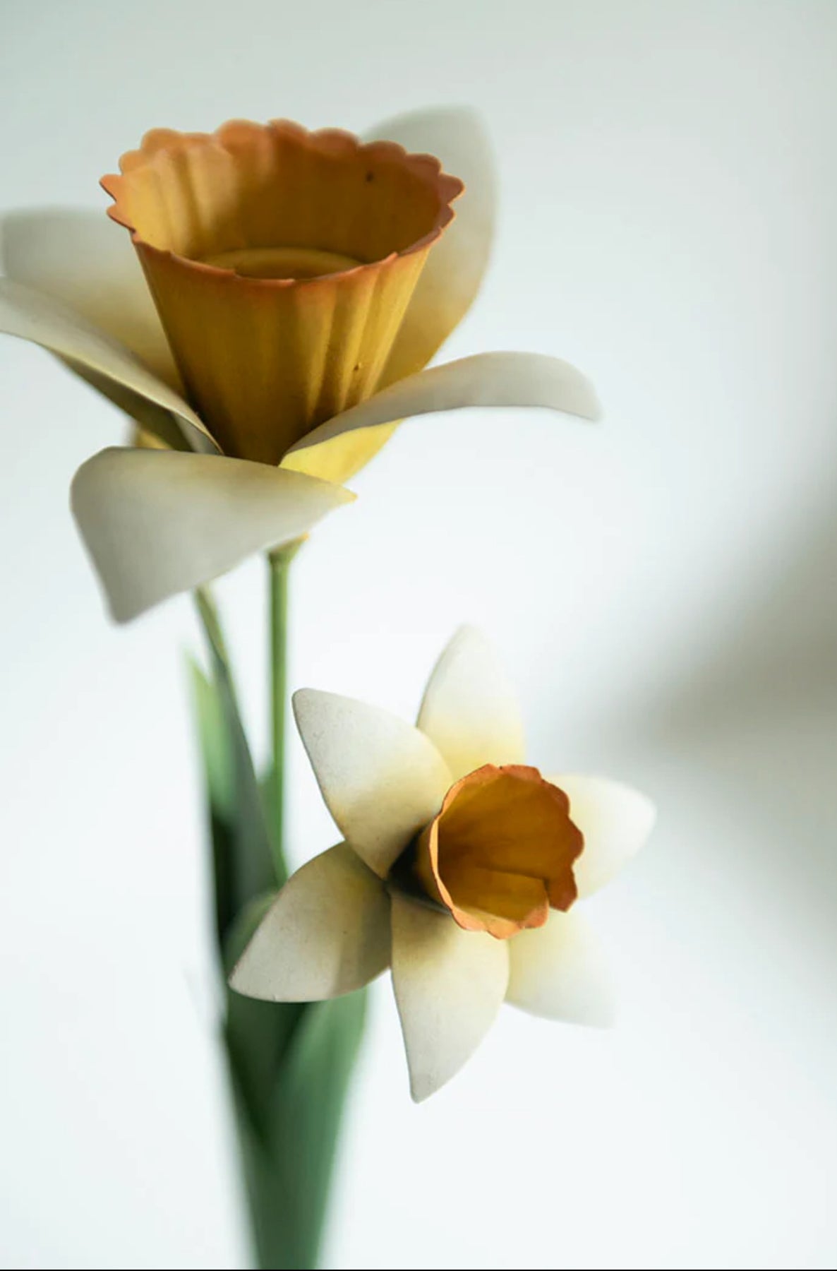 Elegant daffodil candle holder with hand-painted details.