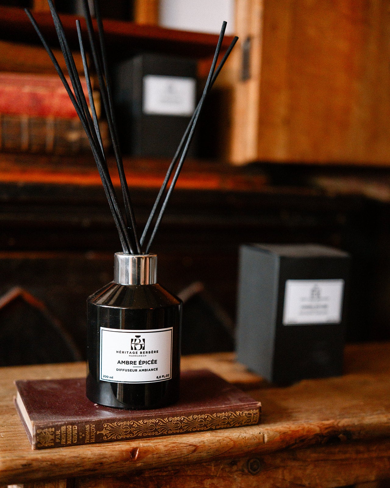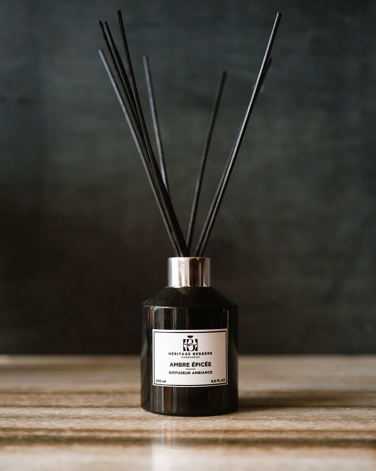 A warm, spiced amber scent made in Marrakech. Natural rattan reeds release the rich Ambre Épicée fragrance throughout your space. Just insert the reeds, let them soak, and flip them whenever you want a scent boost. A simple, elegant way to make any room feel cozy and exotic.