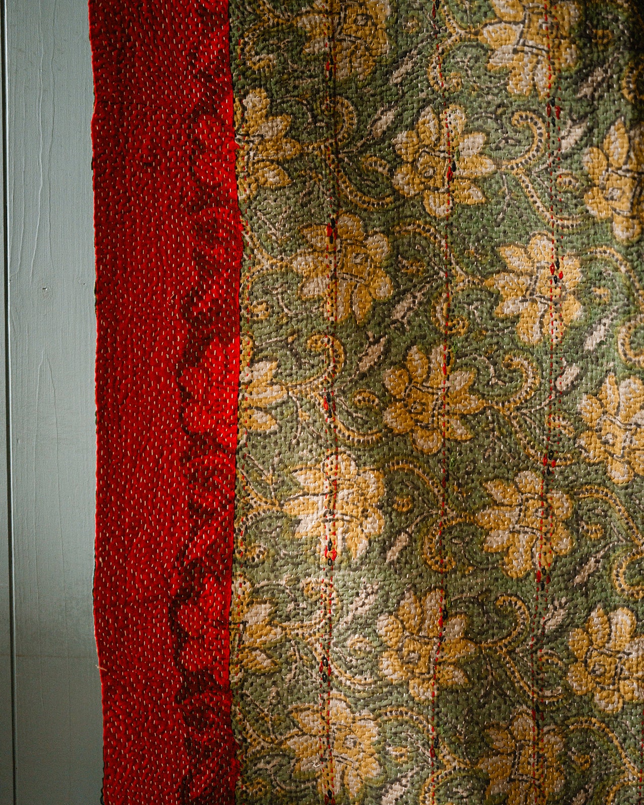 Add a touch of timeless elegance to your home with our vintage Bagru Kantha quilts, handmade in India. These stunning quilts are crafted from layers of recycled cotton saris, featuring intricate kantha embroidery and traditional Bagru block prints. Each quilt is reversible, offering two unique looks in one, with vibrant patterns on one side and subtle designs or plain textures on the other.