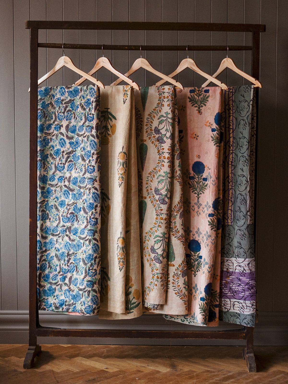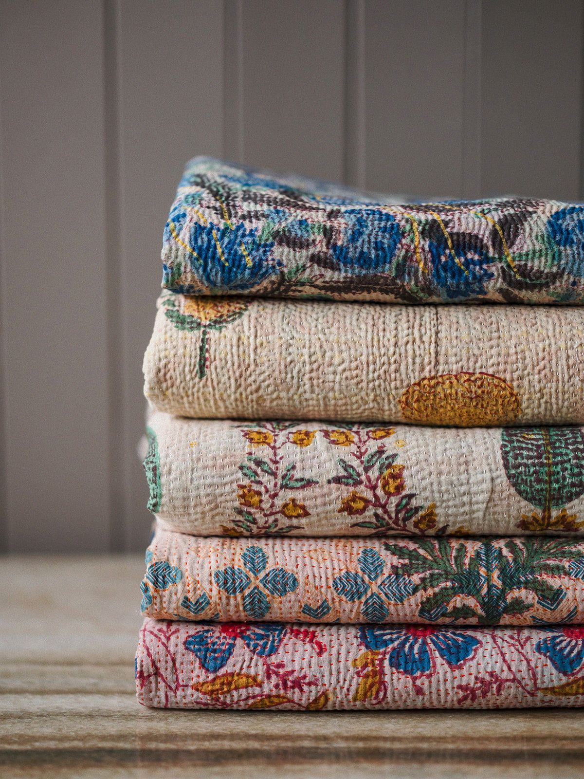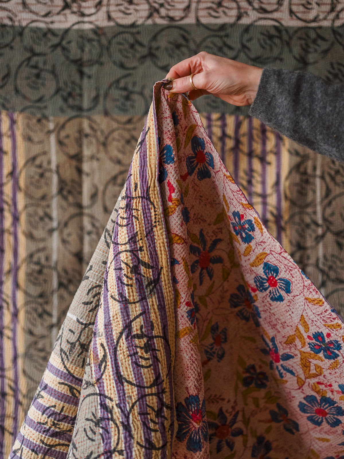 This vintage Indian hand-printed block throw is a beautiful piece of traditional craftsmanship, handmade in India using age-old block printing techniques. Each motif is stamped by hand with carved wooden blocks, creating unique patterns that carry the charm of true artisan work. Finished with delicate running stitch detailing, the fabric has a soft, textured feel that adds warmth and character. Made from natural cotton, it is light yet durable, making it easy to use in many ways — drape it across your sofa or bed as a throw, hang it as a curtain, or style it as an eye-catching table cloth. Its gentle vintage tones and handmade finish bring a touch of soulful heritage to any space.