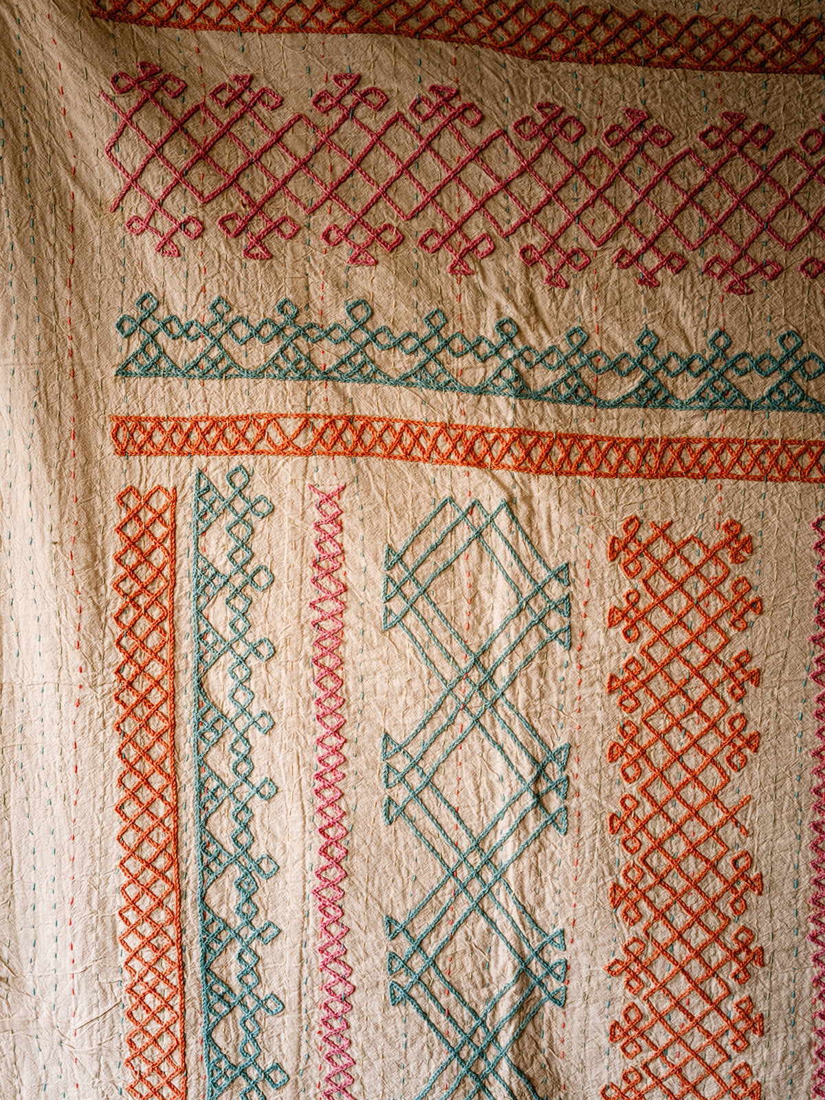 Suzani textiles are known for their unique patterns and vibrant colours. This particular throw showcases a beautiful array of floral motifs, making it not only functional but also a true work of art. With its generous size, it's ideal for cozy evenings or as a stylish statement piece in any room.